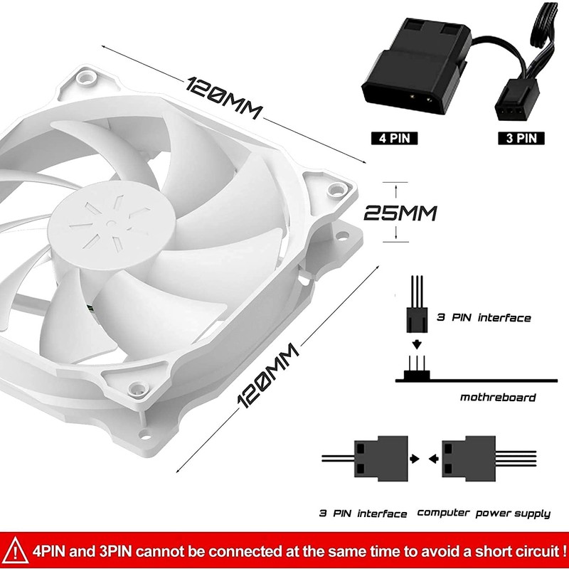 upHere 120mm White Silent Fan for Computer Cases Cooling, Ultra Quiet High Ai...