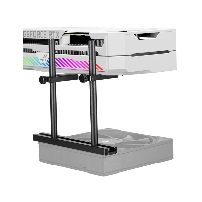 - Adjustable height for maximum flexibility The graphics card support can be adjusted from 10mm to 120mm – whether for compact ITX builds, large ATX systems or vertical GPU mounts. So the graphics card holder supports without compromising aesthetics or airflow.