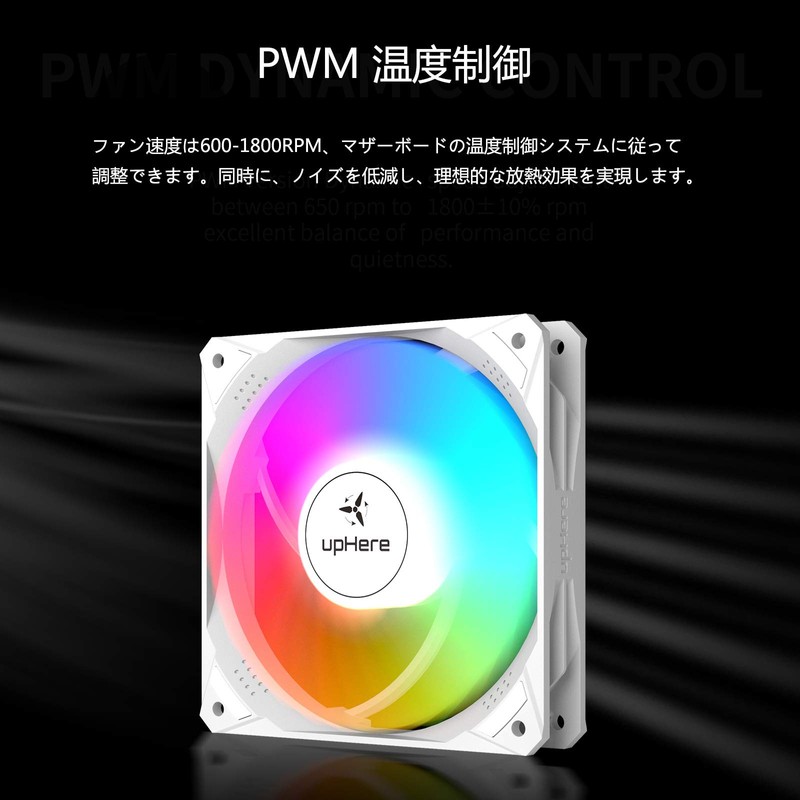 upHere NT12CF4-3 PC Case Fan, 4.7 inches (120 mm), Equipped with Rainbow LED, PWM Compatible, Silent, High Performance, 4 PIN Connectors, Set of 3, White Frame and White Blade