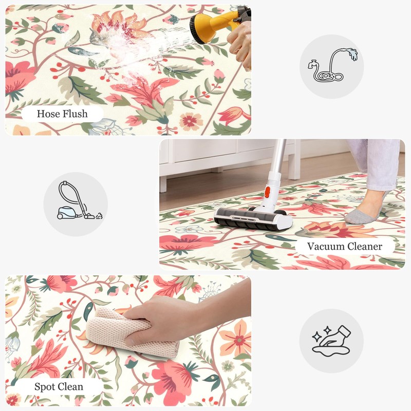 - Non Slip Backing: The floral rv rug features a TPE backing provides strong grip, reducing slips and falls. Whether you're indoors or outdoors, enjoy peace of mind knowing your steps are secure, making every journey safer and more comfortable