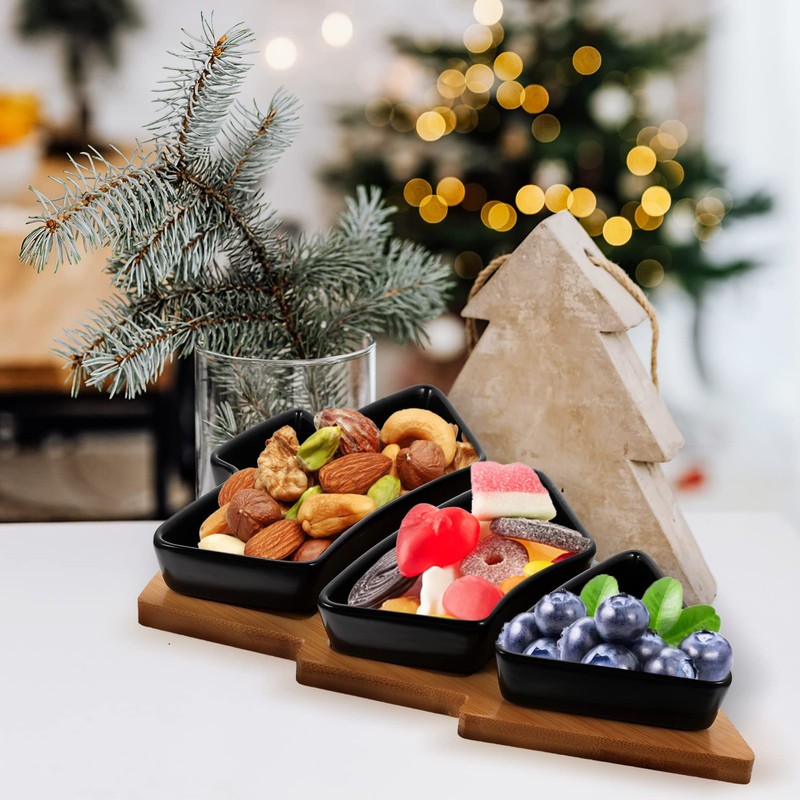 - FESTIVE TOUCH: The Christmas tree shape of these snack trays adds a festive touch to your holiday celebrations. The black color provides a modern twist on traditional holiday decor, making your table setting stand out
