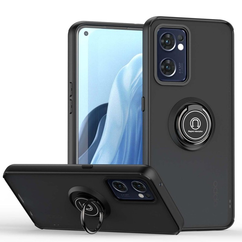 UPLAI Case for OPPO Find X5 Lite 5G, Ultra Thin Shockproof Cover with Magnetic Ring Holder, Premium PC + TPU Bumper Stylish Translucent Frosted Cover.(Black)