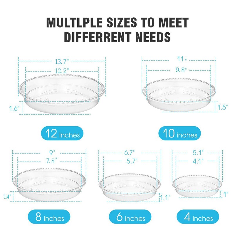 - 【Drain Off Water, Keep Clean And Tidy】The plant saucer able to collect excessive drainage and soil spills from plants such as houseplants, pots or flowers. Besides, you don't need to worry about spills or dirty of furniture carpets, it will keep your garden clean and tidy all the time.