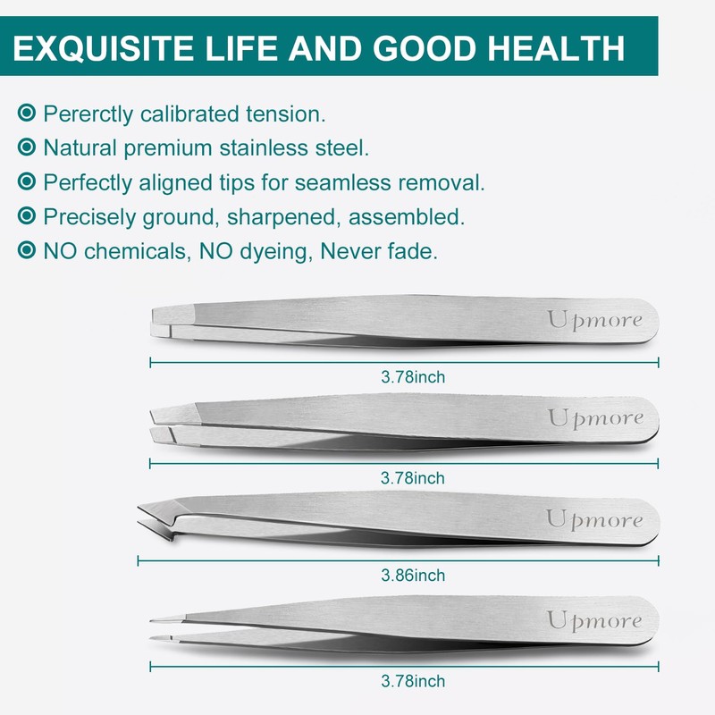 Upmore Upmore 4x Pinzette Set Edelstahl - Silbrig Augenbrauenpinzette Set Schere Pinzette, gerade schräge spitze Zupfpinzette Splitterpinzette Spitzpinzette für Frauen und Männer