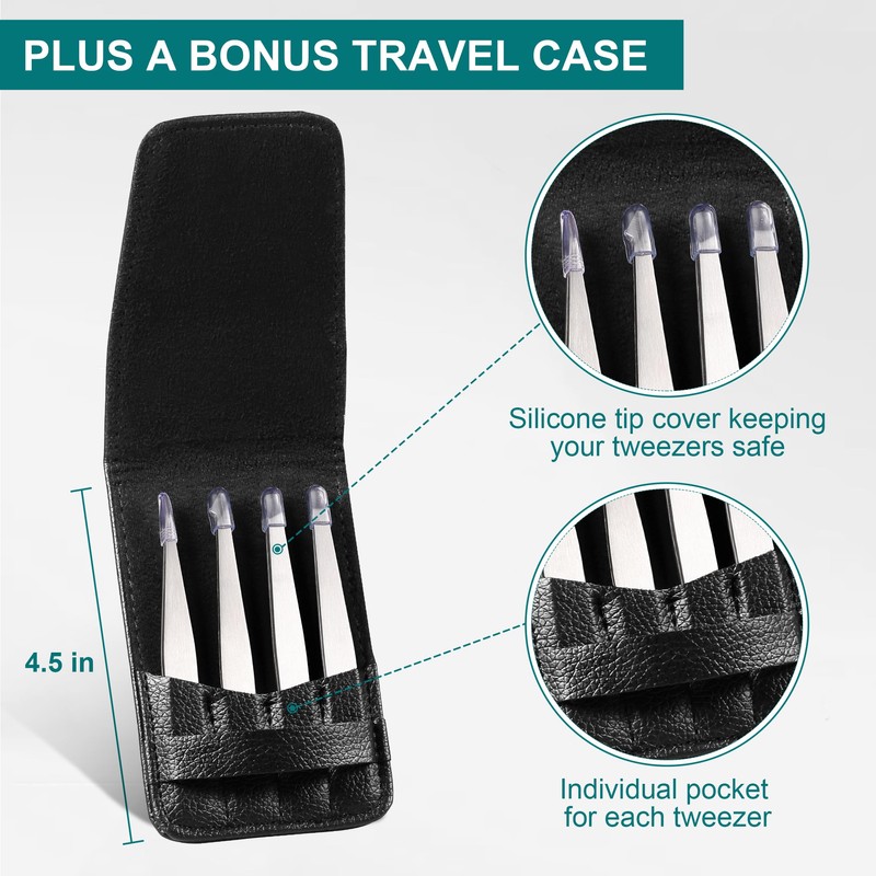 - 4 PRAKTISCHE PINZETTEN: Verschiedene Formen der Spitze enthalten: flach / gerade, schräg und spitz; Präzisionspinzetten mit verschiedenen Spitzen entfernen Haare aus verschiedenen Teilen des Körpers, die Ihre Vielzahl von Bedürfnissen erfüllen können