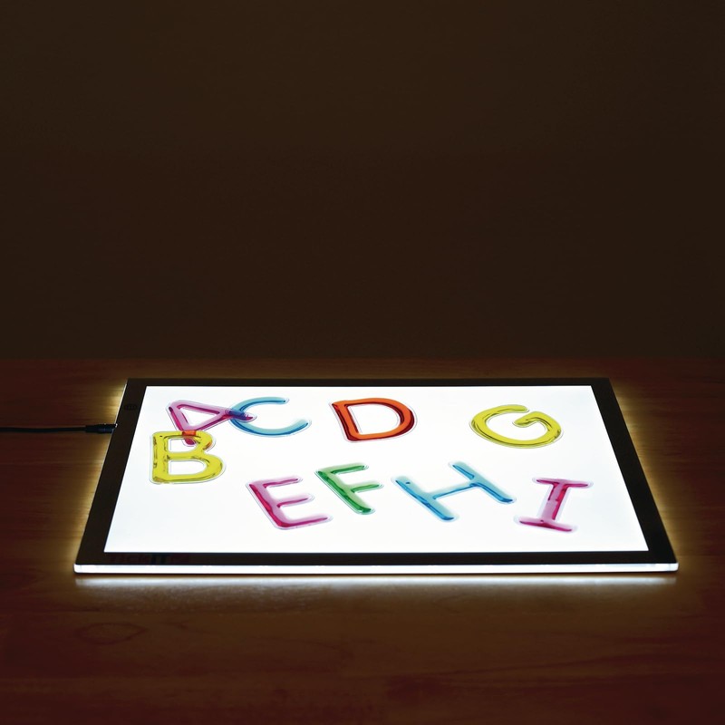 - GREAT ON LIGHT TABLES: Use the alphabet letters on a light table to create glowing words with 5 different colors (yellow, blue, green and orange) with vowels in pink.