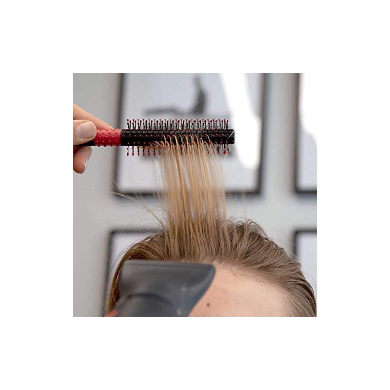 Mit kugelförmigen Borsten für Luftzirkulation und verhindert Ziehen. Rutschfester Gummigriff für leichteres Gleiten und bessere Kontrolle. Ideal für mehr Hebung oder für die Schaffung des perfekten Pompadours.