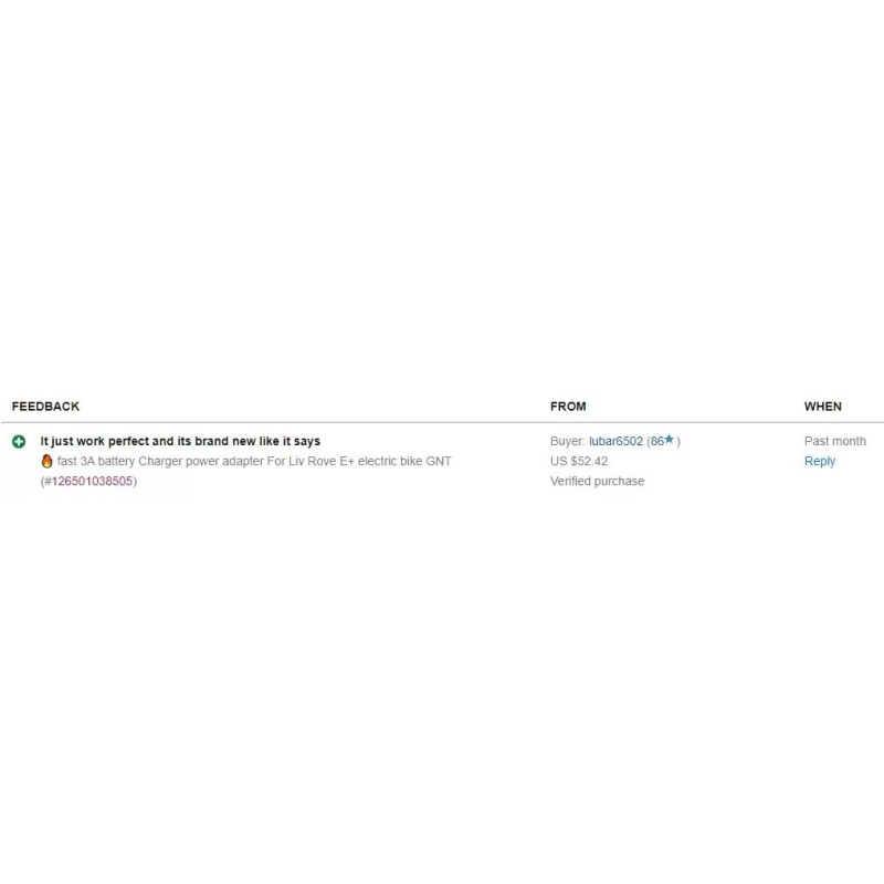 upright fast 3A battery Charger power adapter For Liv Rove E+ electric bike GNT