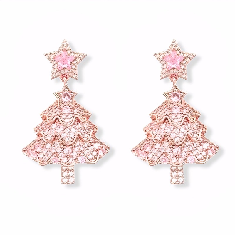 UPRIMEASY Christmas Earrings for Women, Zircon Star Christmas Tree Earrings, Cute Winter Drop Dangle Earrings, Holiday Jewelry Xmas Accessories Gifts 2025 (Sparkling Pink)