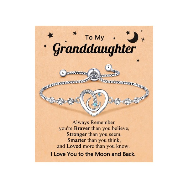 - Bracelets for Teen Girl: A beautiful heart bracelet featuring sparkling cubic zirconia, designed with moon and star that symbolizes: "I Love You to the Moon and Back." Perfect for expressing your unending love and admiration for your granddaughter.