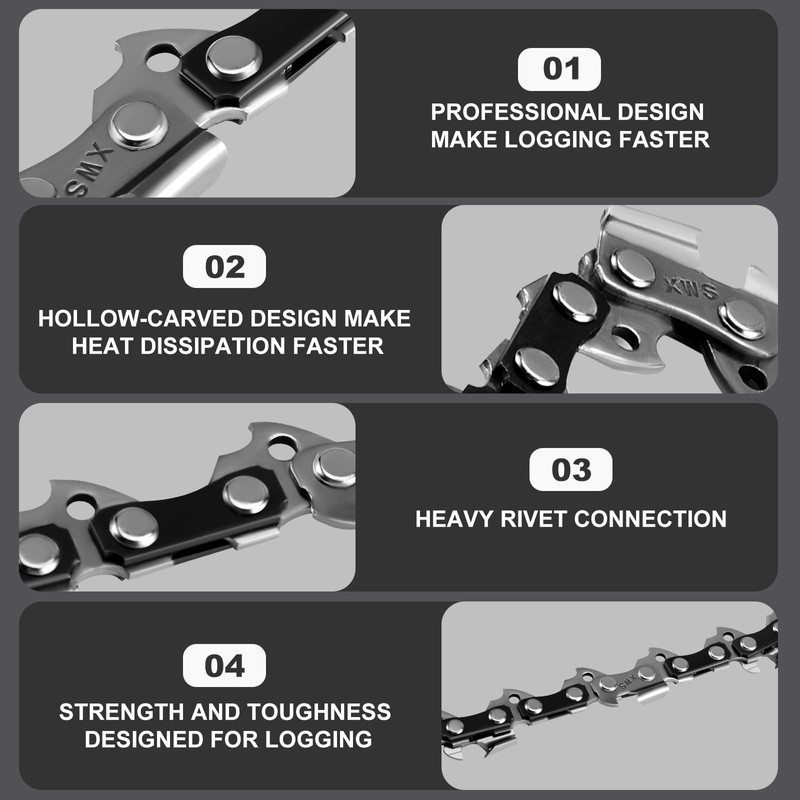 • 【High-Quality Steel and Manufacturing Process】Our chainsaw chain is made of German imported steel and is combined with industrial-grade hard chrome plating, providing high toughness, high hardness, resistance to breakage, durability, and corrosion resistance. The heat-treated quenched blade is extremely sharp, ensuring smooth and uninterrupted cutting.