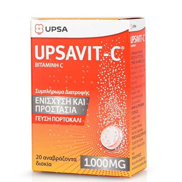 Upsa Upsavit-C Food Supplement Vitamin C 1000mg with Orange Flavor (20 Efferv.Tabs)