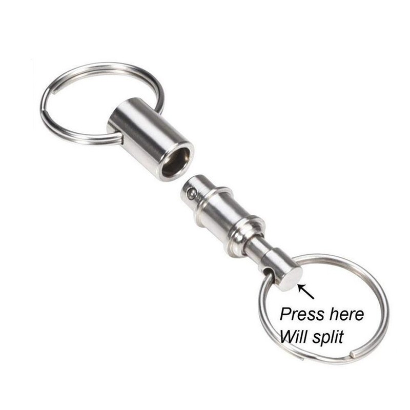 - Spring ball bearing connection mechanism prevents accidental release. Classic detachable keychain; made entirely of steel with a shiny nickel plated finish.