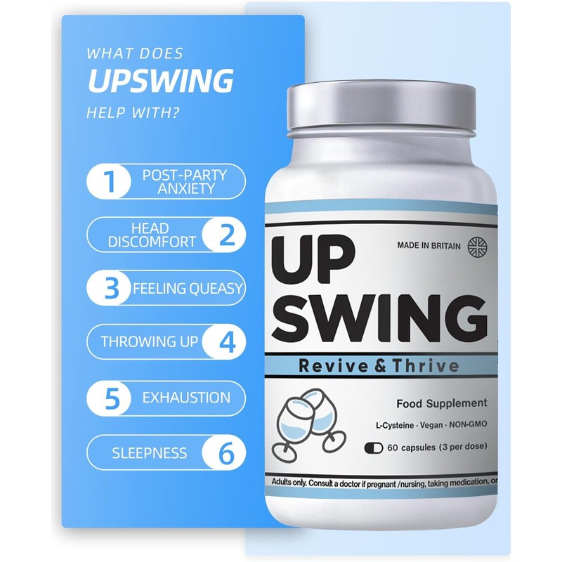 Upswing After Party Recovery Supplement for Easy Tomorrow, Liver Cleanse & Boost Energy, L-Cysteine HCL, Vitamin Bs C, Vegan Capsules- 60 Power Pack