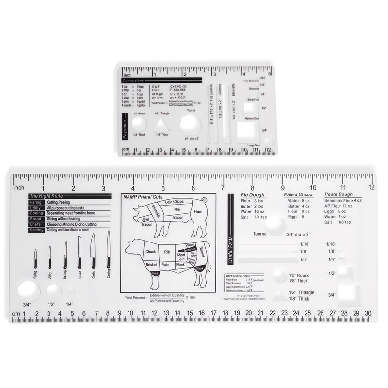 UPTTHOW Culinary Ruler Acrylic Cutting Reference Template Cooking Measurement for Food Essential Kitchen Tool with Weight Temperature Baking Conversion Chart for Beginner and Chef (5 * 3"/12 * 5")