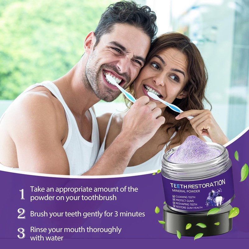 - 🦷 Stain - Shattering Whitening for a Dazzling Smile: Our purple tooth powder contains unique components that target and break down stubborn stains on teeth. Gradually, it restores your teeth's natural whiteness and shine. The whitening process is gentle, safeguarding your tooth enamel and ensuring a bright, confident smile.