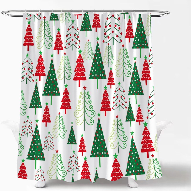 UPUMKSK Christmas Shower Curtain Red Green Xmas Tree Star Polka Dots Cartoon Modern Geometric Pine Fir Simple Winter Holiday Happy New Year Bath Curtain with Hook