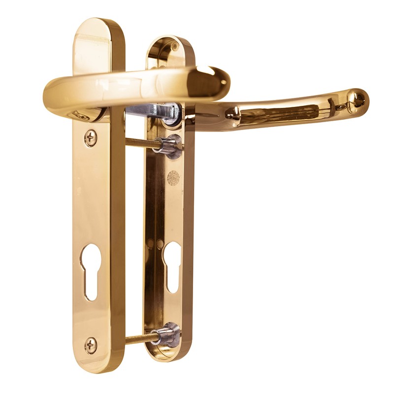 - Quality Tested - Reliable and long lasting Polished Brass upvc door handle which have been cycle tested over 50,000 operations. Non-Handed upvc handle, can be fitted to left or right handed upvc doors. Can be fitted to any door with a suitable multipoint door lock, such as patio door handle, front door handle, double glazed door handles, conservatory door handles, french doors external and internal, door handle external, bifold door handle, back door, rear door handle.