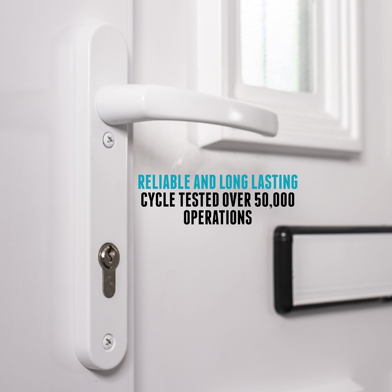 - Quality Tested - Reliable and long lasting upvc door handle which have been cycle tested over 50,000 operations. Non-Handed upvc handle, can be fitted to left or right handed upvc doors. Can be fitted to any door with a suitable multipoint door lock, such as patio door handle, front door handle, double glazed door handles, conservatory door handles, french doors external and internal, door handle external, bifold door handle, back door, rear door handle.