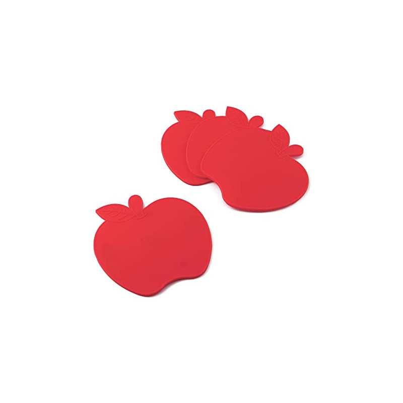 UPware Apple-Shaped Silicone Drink Coasters - Non-Slip, Anti-Stain, Heat-Resistant, Reusable Coasters for Drinks, Red, 4.25 x 4.25 Inches, Set of 4