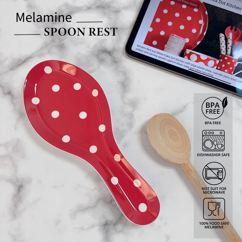 UPware Melamine Spoon Rest Spoon Holder Kitchen Utensil Holders 9.625 Inch for Kitchen Counter Dining Table (Red Polka Dot)