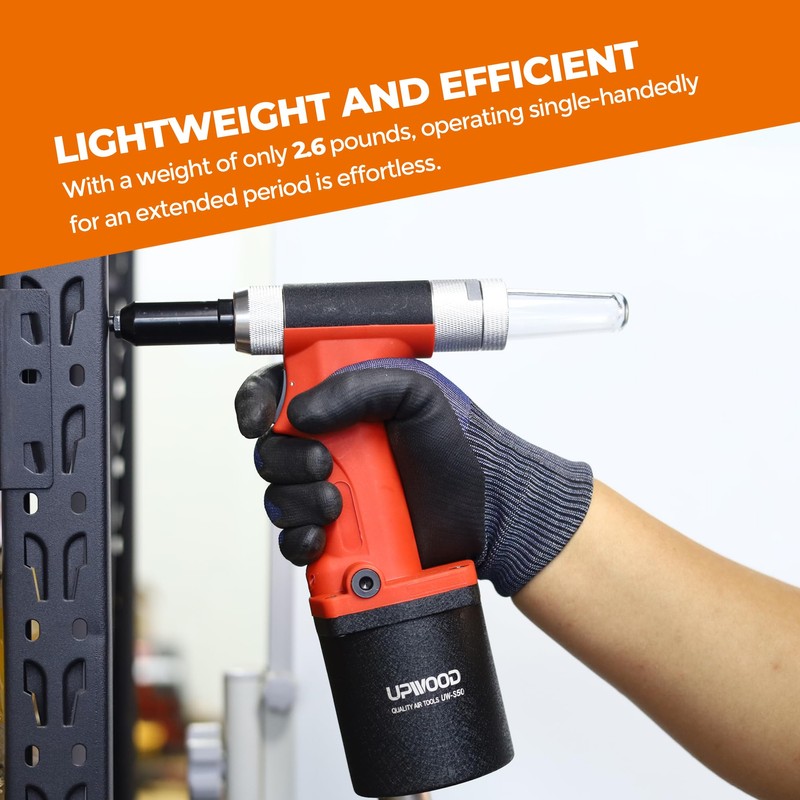 - 【LIGHTWEIGHT BUT STRONG】This riveter is constructed from aviation-grade aluminum, which features a compact design. With a weight of only 2.6 pounds, operating single-handedly for an extended period is effortless.