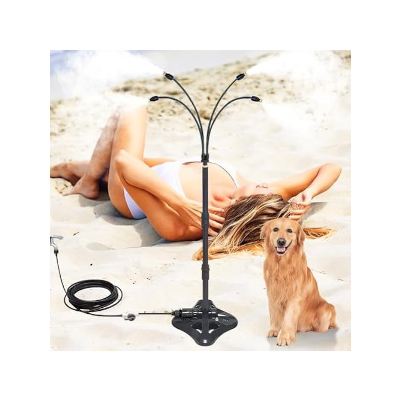 UR FOREST Updated Standing Misting Cooling System 26.2FT (8M) Misting Line + 4 Brass Misting Nozzles,4 Height Option, Stand Mister Hose for Outside Outdoor Patio, Pet Cooling, Kids Water Playing
