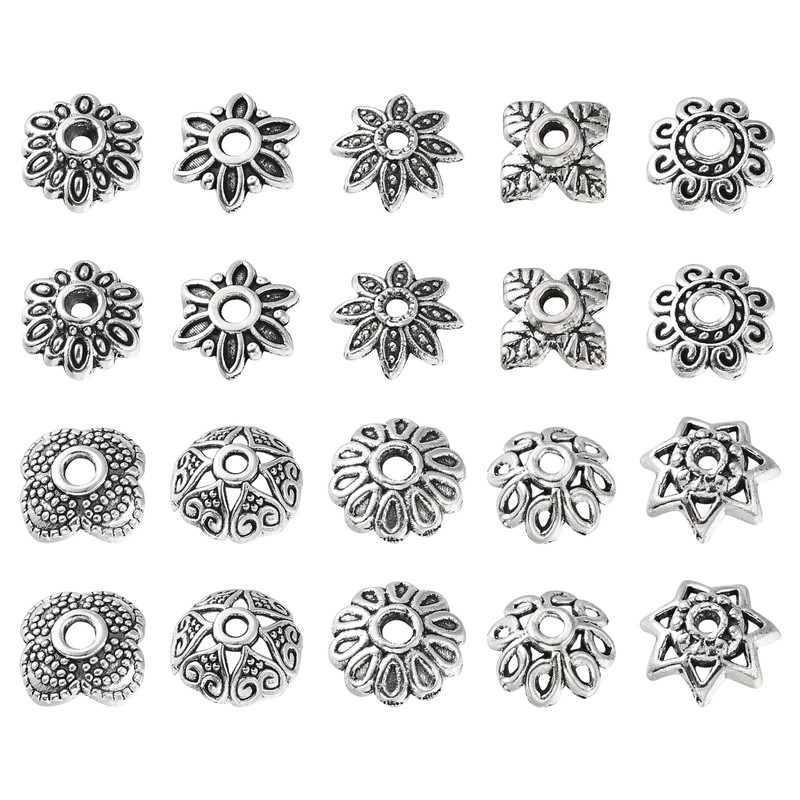 UR URLIFEHALL 200 Pcs 10 Styles Tibetan Silver Flower Bead Caps Antique Silver Floral Spacer End Caps for Jewellery Making DIY Crafts