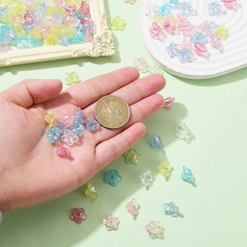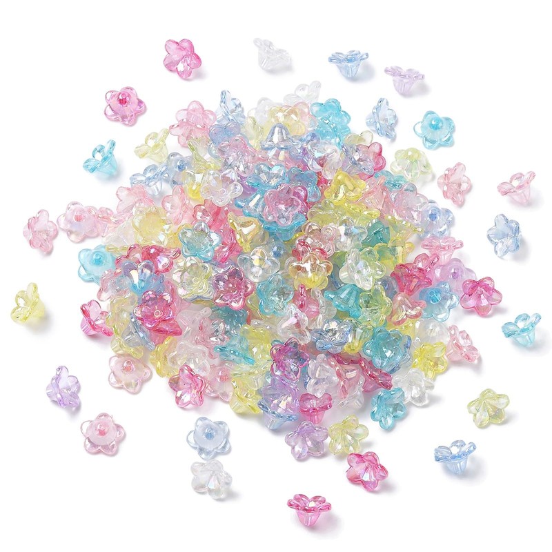 UR URLIFEHALL 200 Pcs Acrylic Flower Bead Caps AB Color Plated Floral Spacer Beads End Caps for Bracelet Earring DIY Crafts Jewelry