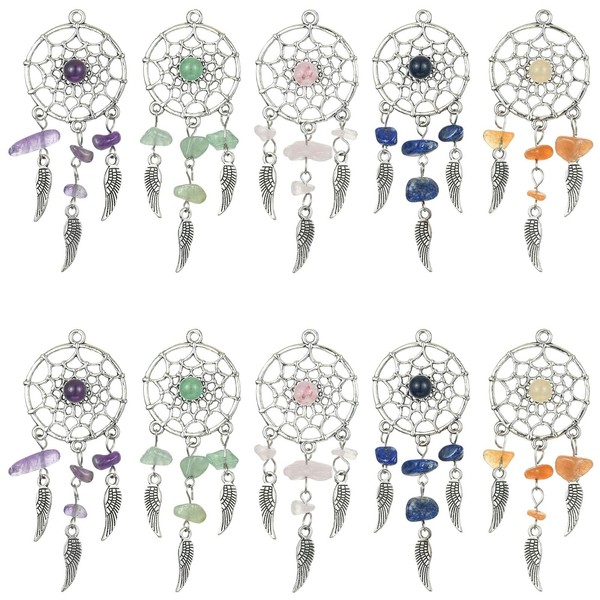 - 🎐Sturdy Material: All dream catcher charms are made from antique silver woven web charms, feather charms, and mixed natural stone chips, all silver lucky charms are reliable and bright, durable and lightweight, not easy to break or fade after a long time using.