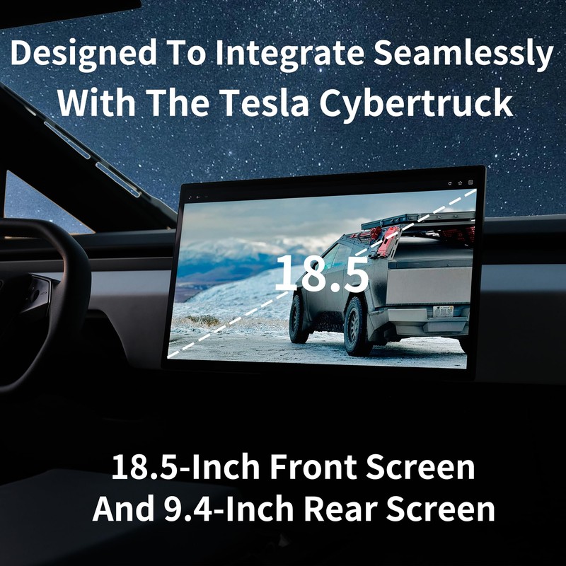 - Designed exclusively for the 2024 Tesla Cybertruck 18.5-inch Front Screen and 9.4-inch Rear Screen