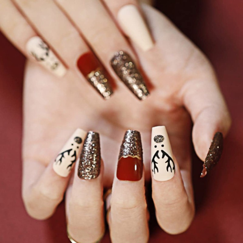- Christmas fake nails made of acrylic, environmentally friendly materials, non-toxic, odorless, will not hurt your hands.