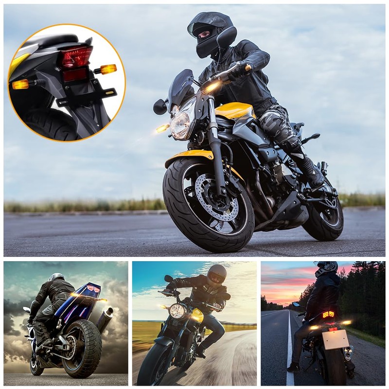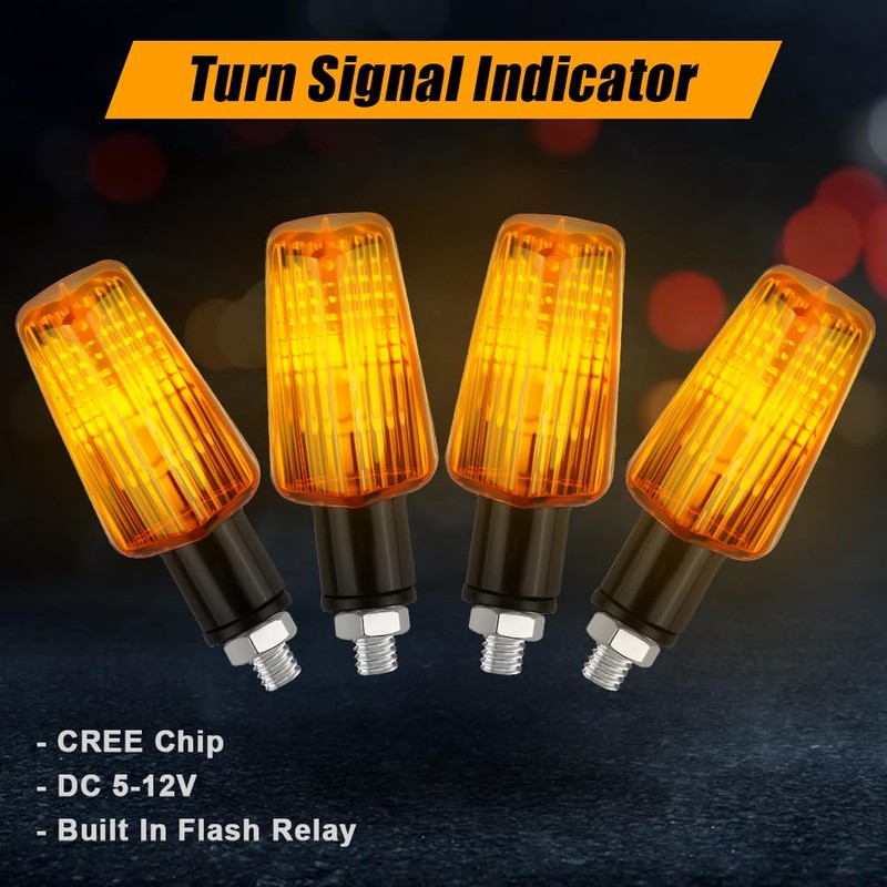 - 4pcs Motorcycle Indicator LightsMotorcycle signal turn lights, with super bright bulbs, no heat, durable, extremely low power consumption, no delay, very suitable for turn signal lights and indicator lights. 12V, usually suitable for motor vehicles such as motorcycles and scooters.