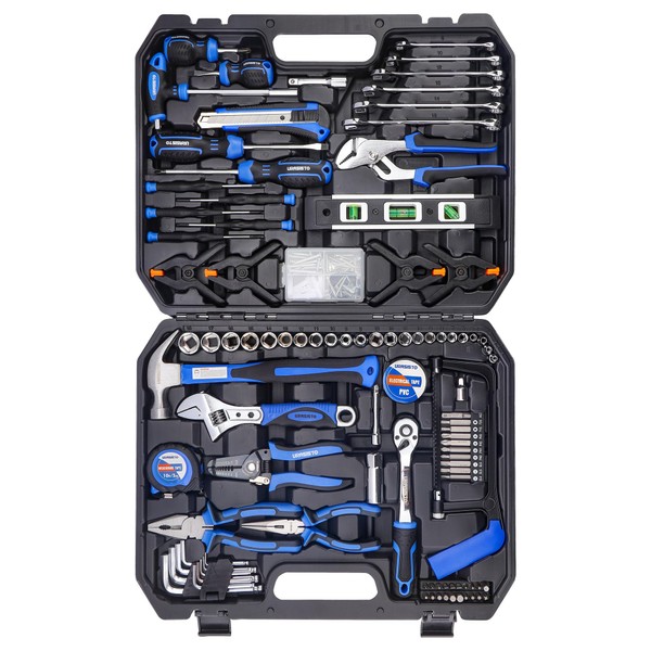 - 【WIDELY APPLICATIONS】This high-grade steel tools set is perfect for repairmen, construction workers, mechanics to do household repairing, picture Hanging, box opening, screw tightening, cutting, measuring, furniture assembling and woodwork at home, garage dormitory, and workshop.It is also an ideal gift for family or friends.