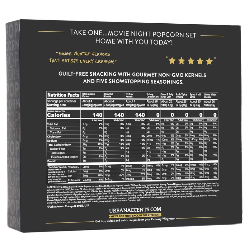 Urban Accents Urban Accents MOVIE NIGHT Popcorn Kernels and Popcorn Seasoning Variety Pack (set of 8) - 3 Non-GMO Popcorn Kernel Packs and 5 Gourmet Popcorn Snack Seasoning