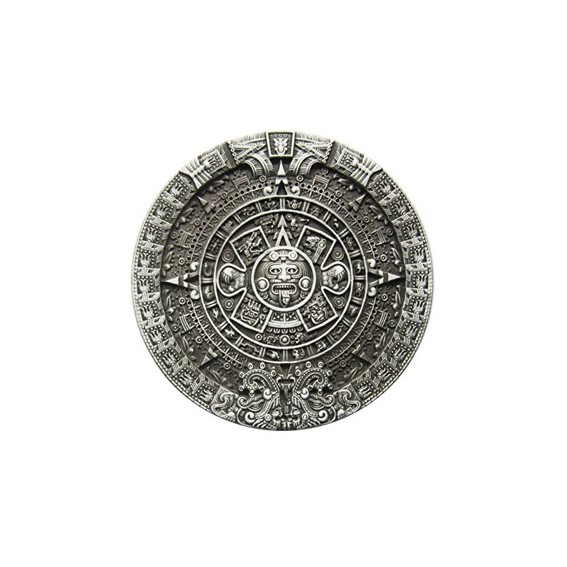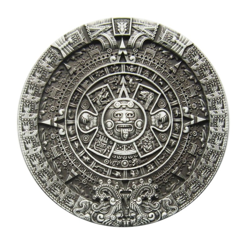 Urban Backwoods Aztec Calendar I Belt Buckle for Interchangeable Belt Buckle, silver