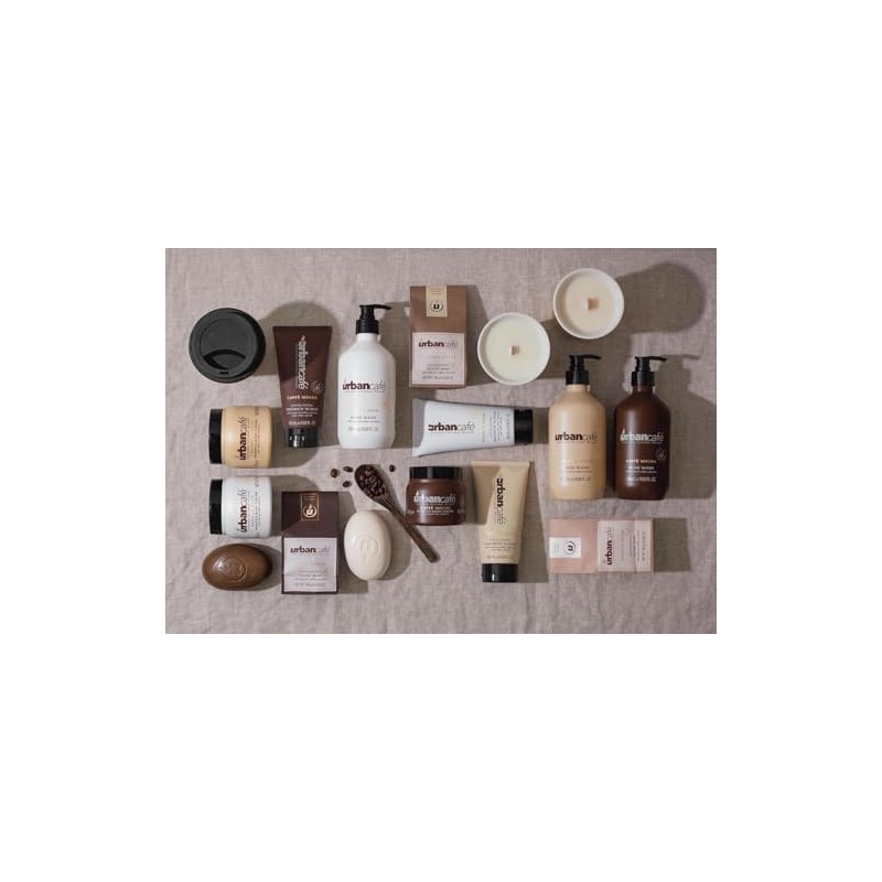 Urban Café Coffee Infused Soap Bar, Caramel Latte Scented Natural Soap, Exfoliating Body Bar with Real Coffee Grounds, Moisturising & Aromatic Skincare, 180g