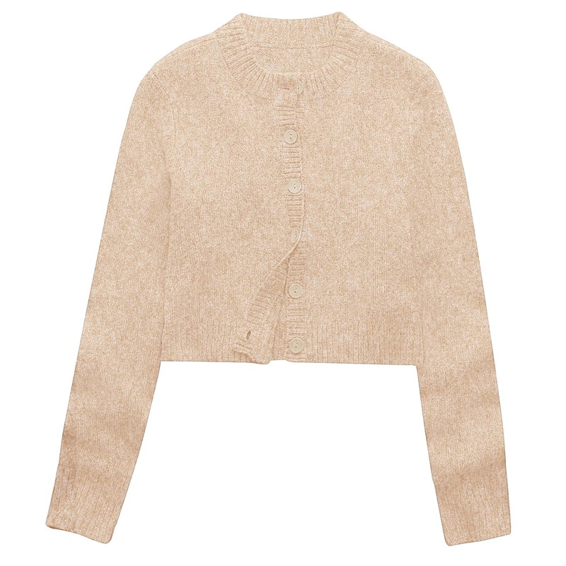 Urban CoCo Women's Crew Neck Cropped Cardigan Sweaters Long Sleeve Open Front Button Down Shrug Sweater Jackets (Nude Khaki,M)