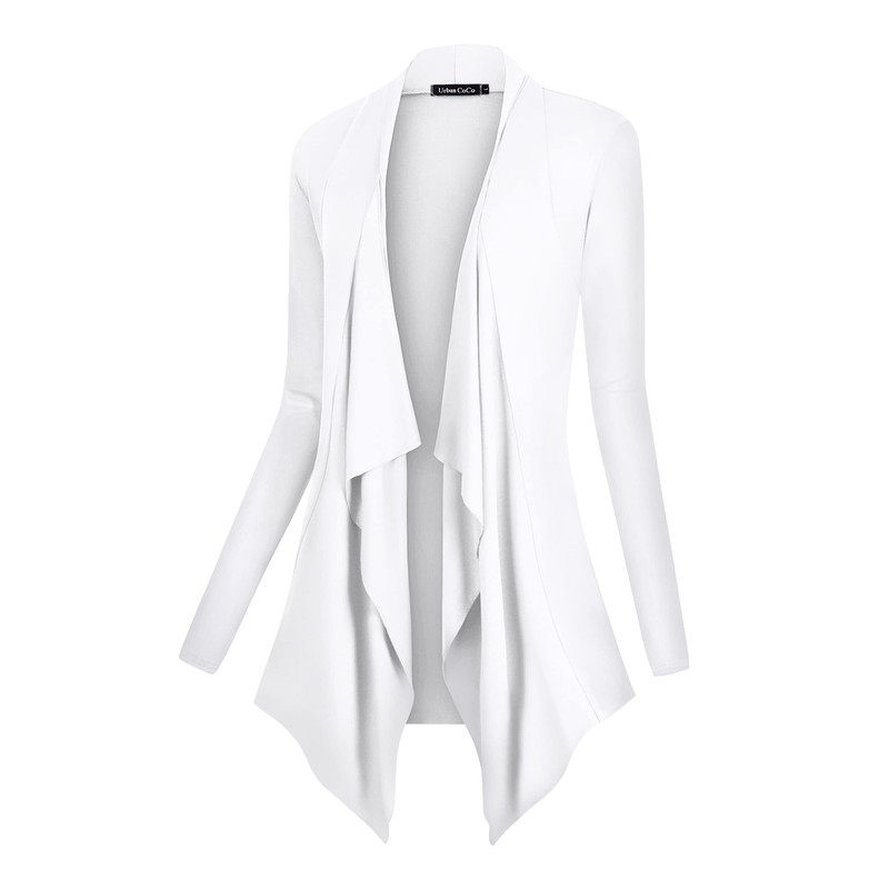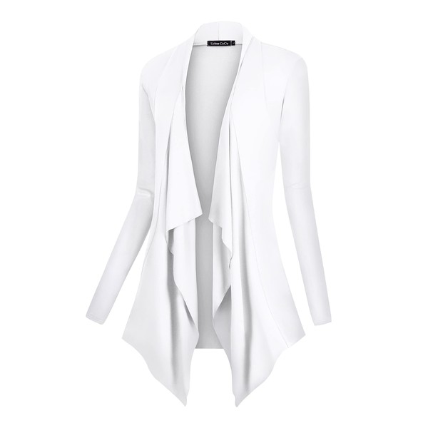 Urban CoCo Women's Drape Front Open Cardigan Long Sleeve Irregular Hem (2XL, White)