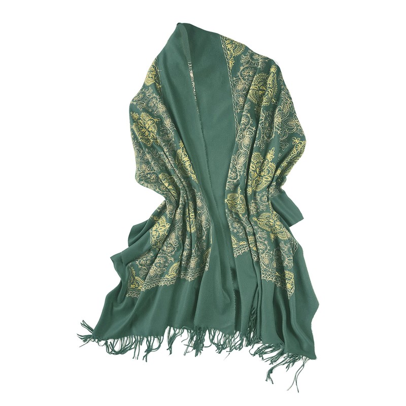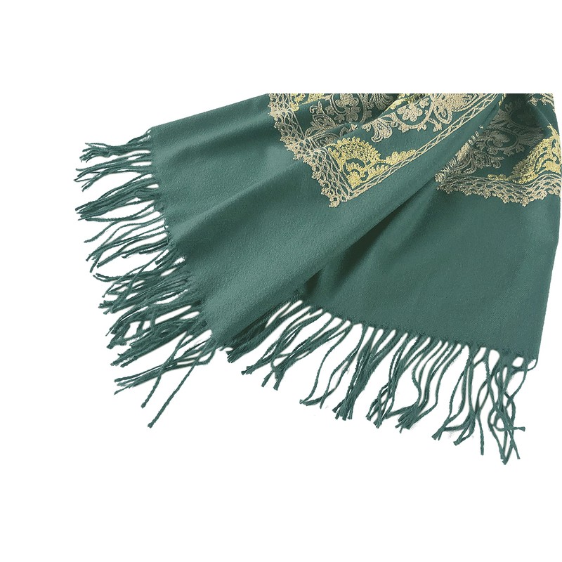 Urban CoCo Women's Embroidered Oversize Tassel Shawl Scarf (#2-Dark Green)