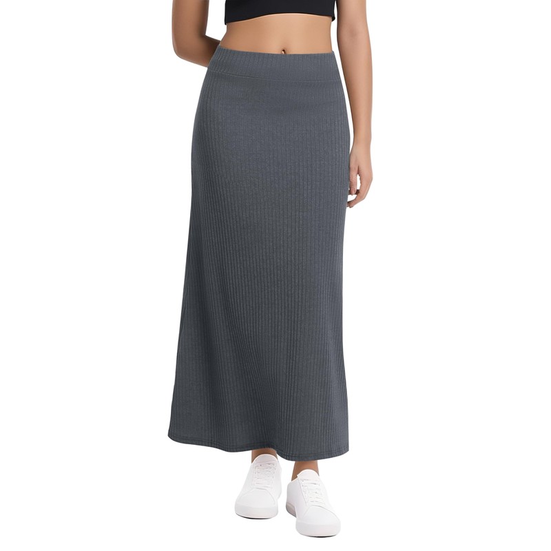 Urban CoCo Women's High Waist A-Line Maxi Skirt Comfy Ribbed Knit Long Skirt(S, Dark Grey)