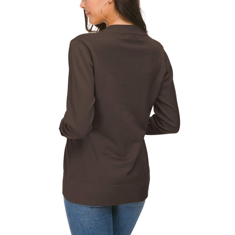 Urban CoCo Women's Long Sleeve Open Front Knit Cardigan Sweater (M, Brown)