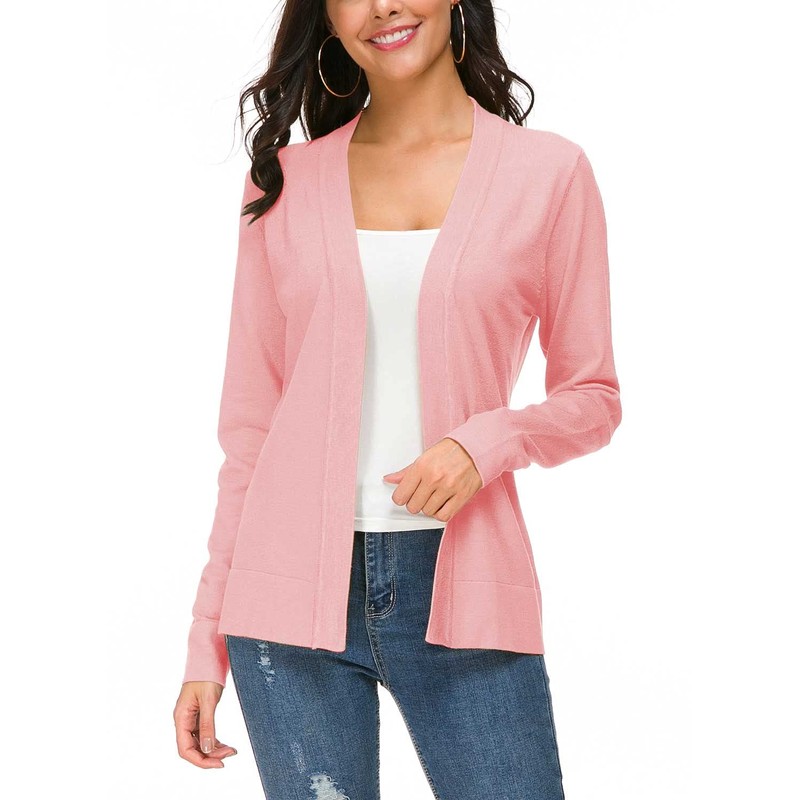 Urban CoCo Women's Long Sleeve Open Front Knit Cardigan Sweater (Pink, XL)