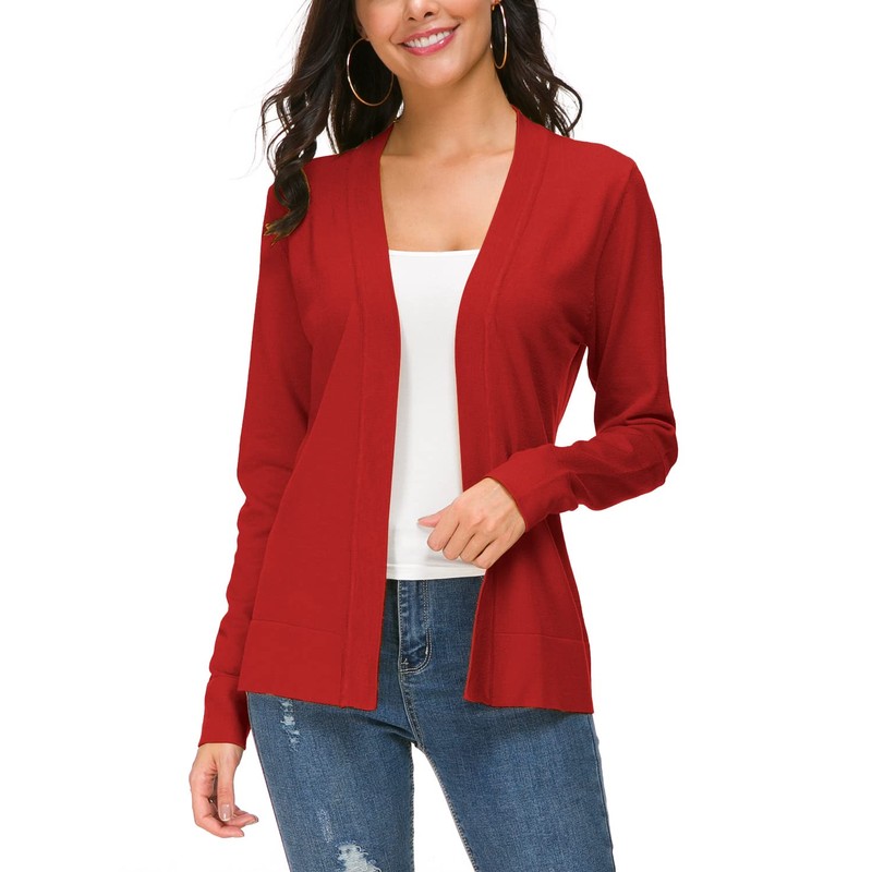 Urban CoCo Women's Long Sleeve Open Front Knit Cardigan Sweater (Red, S)