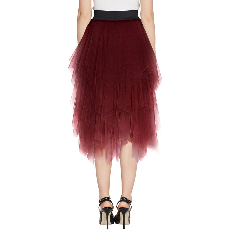 Urban CoCo Women's Sheer Tutu Skirt Tulle Mesh Layered Midi Skirt (L, Wine Red)