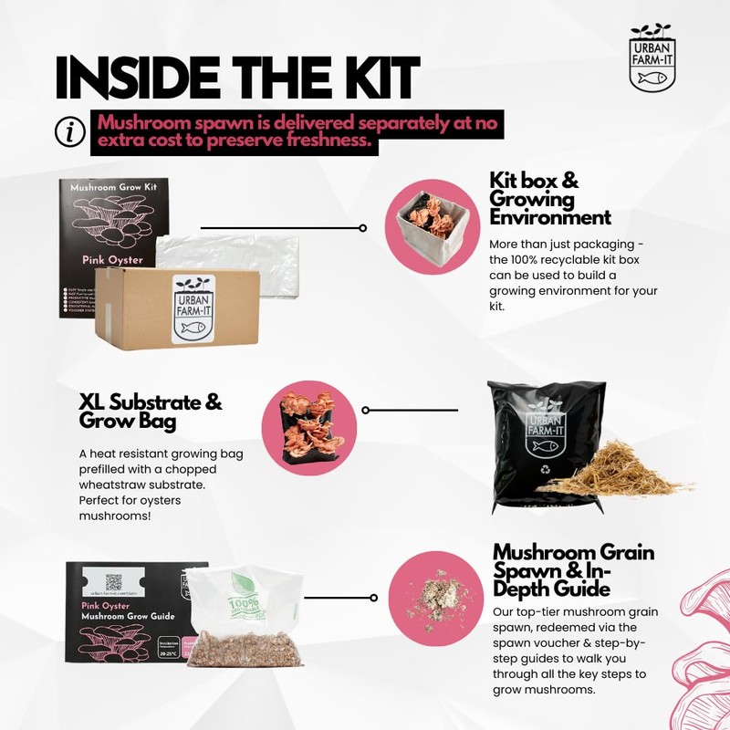 - EXTRA LARGE OYSTER MUSHROOM GROW KIT: High-quality mushroom living spawn and grow environment with specially selected substrate ideal for Pink Oyster.
