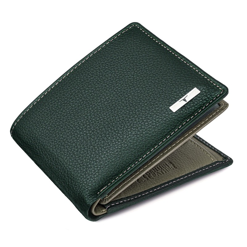 Urban Forest Kyle Two Fold Leather Wallet, Green/Grey with RFID Blocking for Men