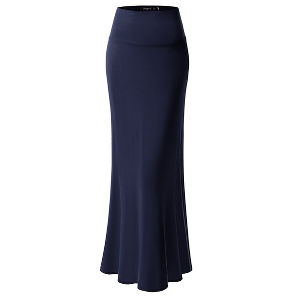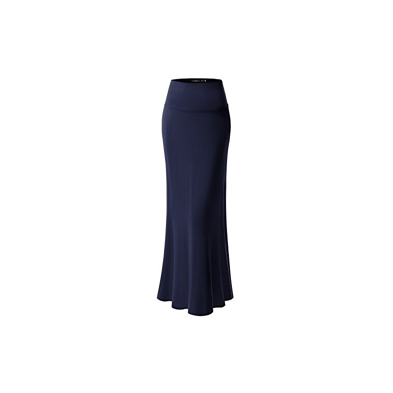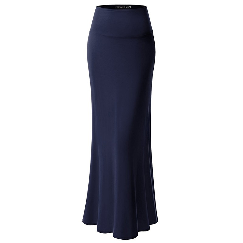 URBAN K Womens Basic Foldable High Waist Regular and Plus Size Maxi Skirts,Navy,Medium
