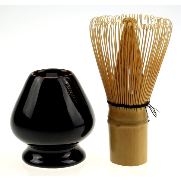 - Set of a high quality matcha brush with 100 bristles and a beautiful matcha brush holder made of ceramic, black glazed.