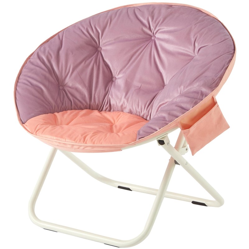 - HIGH QUALITY: Chair is made from a super micromink fabrication so it’s extra comfortable for you to sit on. The saucer chair is filled with polyester for extra padding and comfort. Fabric is easy to care for and easy to clean with a damp cloth, spot clean only. Legs features a safety locking mechanism for added support.